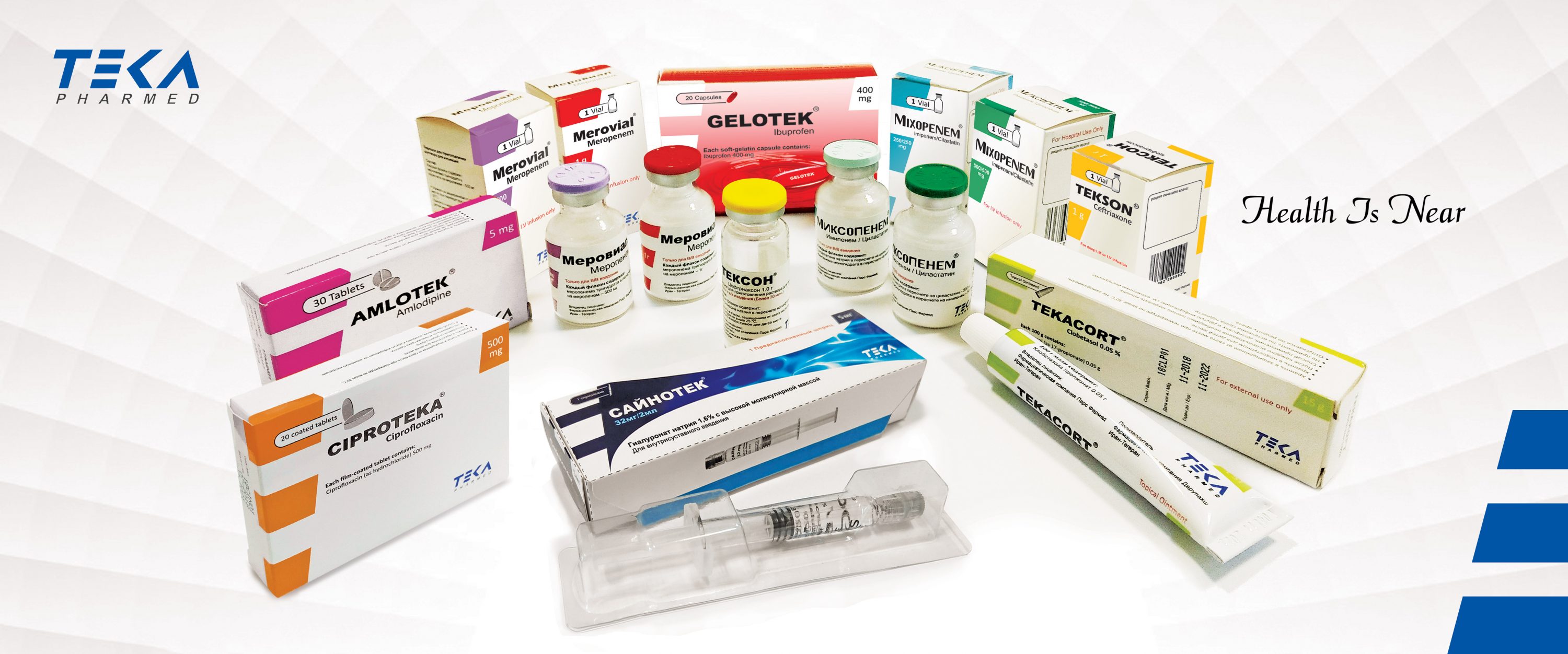 “Teka” is the brand name of Pars Pharmed Pharmaceutical Company in the field of pharmaceutical industry. The word “Teka” is derived from the words “Apteka” and “Apotek“ which means pharmacy in Latin languages.